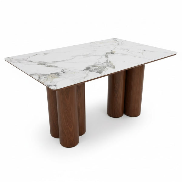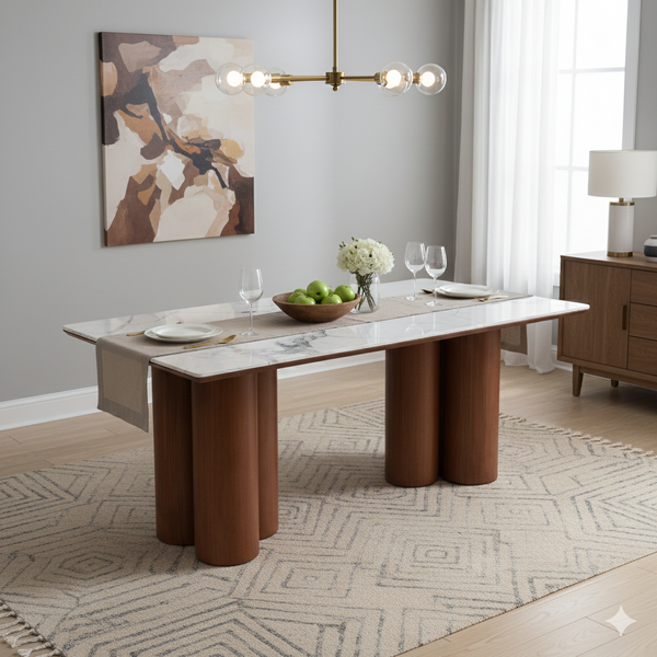 Introducing the Scala Dining Table — where refined design meets artisanal craftsmanship. This modern masterpiece combines a sleek natural marble top with warm, solid wood legs to create a centerpiece that’s both timeless and contemporary. Whether you're hosting an intimate dinner or a grand celebration, the Scala Dining Table brings elegance and durability to your space.